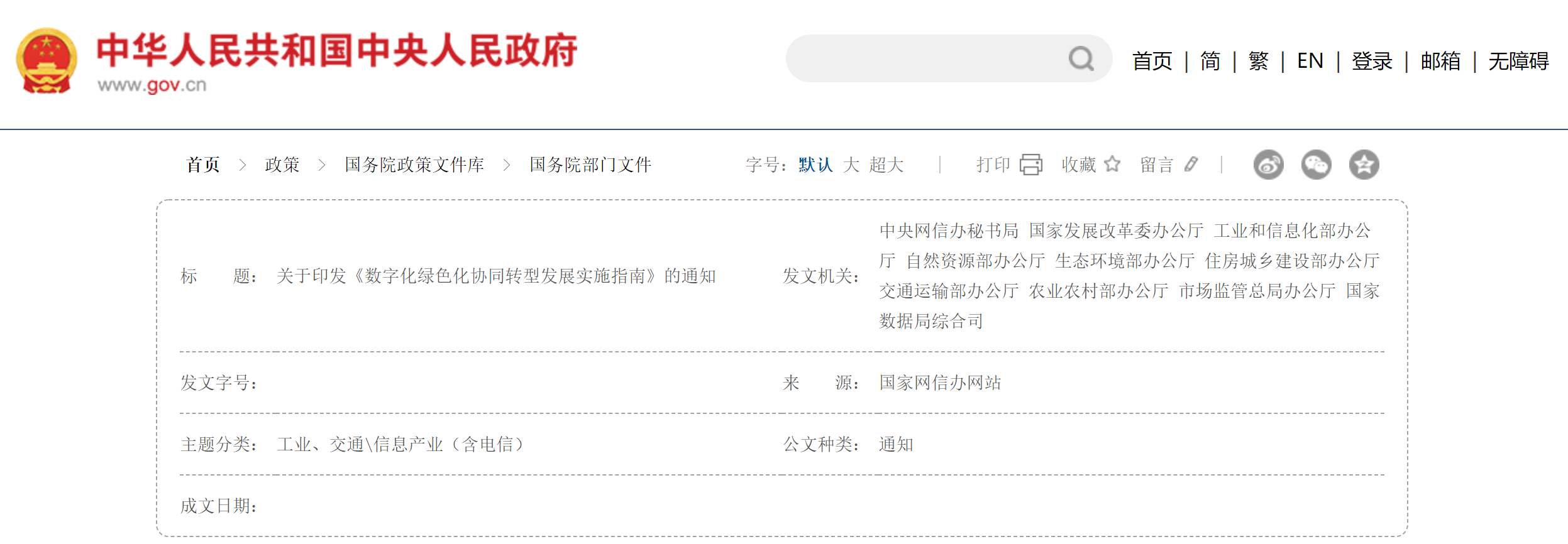 关于印发《数字化绿色化协同转型发展实施指南》的通知