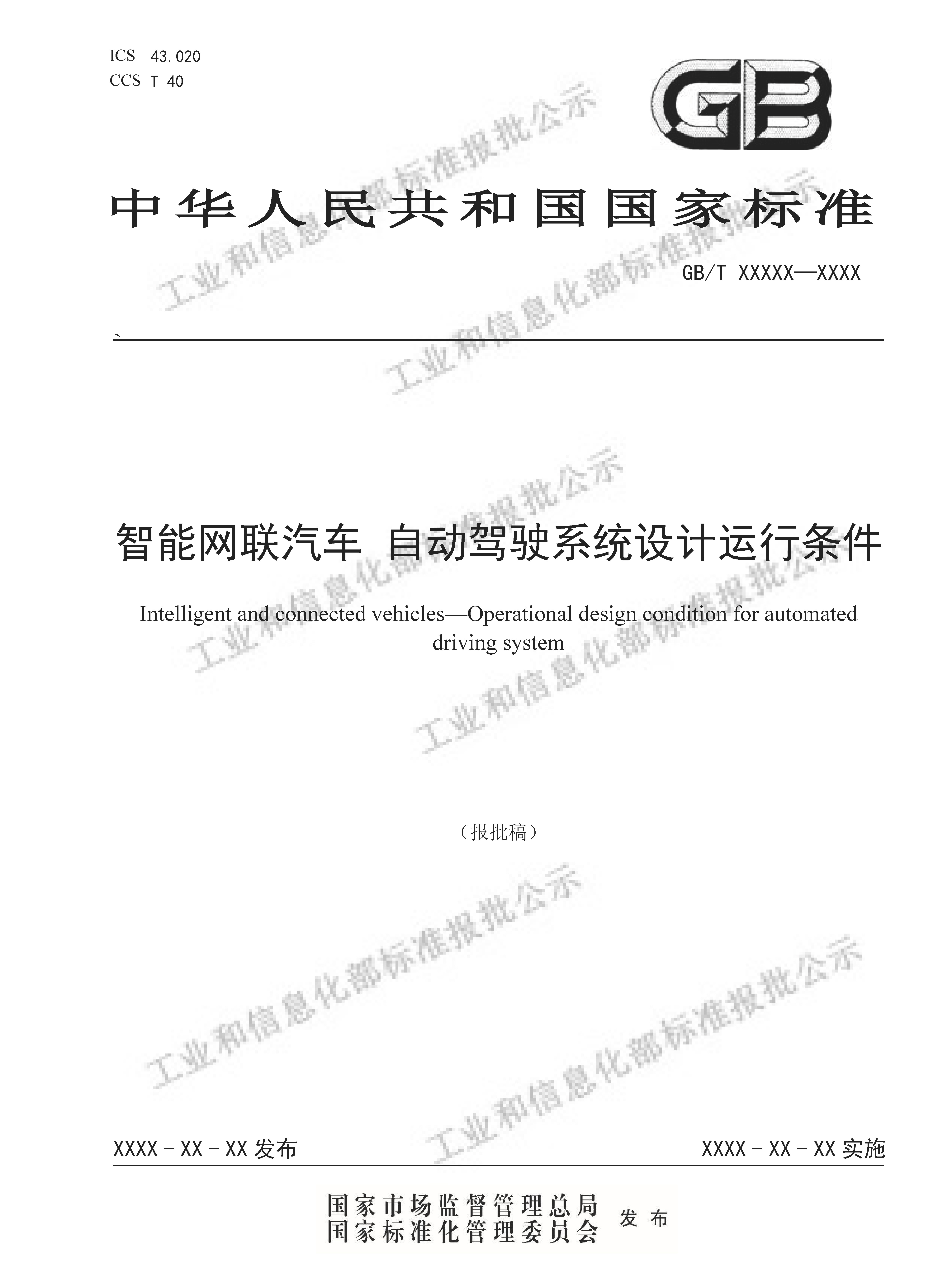 《智能网联汽车 自动驾驶系统设计运行条件》(报批稿)阅览链接: