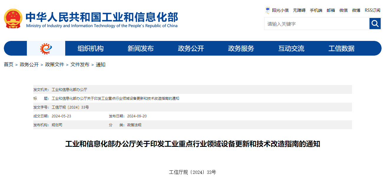 为贯彻落实党中央、国务院决策部署,加强对推动工业领域设备更新和技术改造工作的指导,依据《大规模设备更新和消费品以旧换新行动方案》和《推动工业领域设备更新实施方案》,工业和信息化部组织编制了《工业重点行业领域设备更新和技术改造指南》,现印发给你们,请结合实际推动实施。