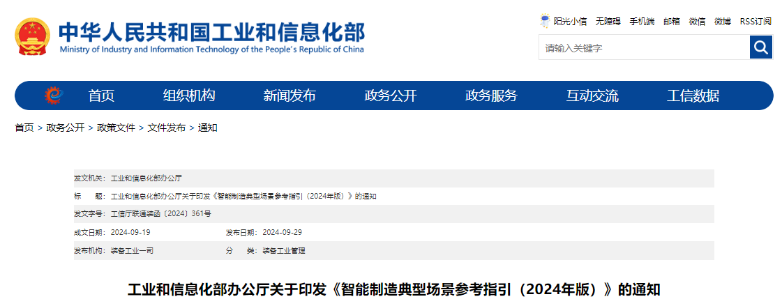 工业和信息化部办公厅关于印发《智能制造典型场景参考指引(2024年版)》的通知