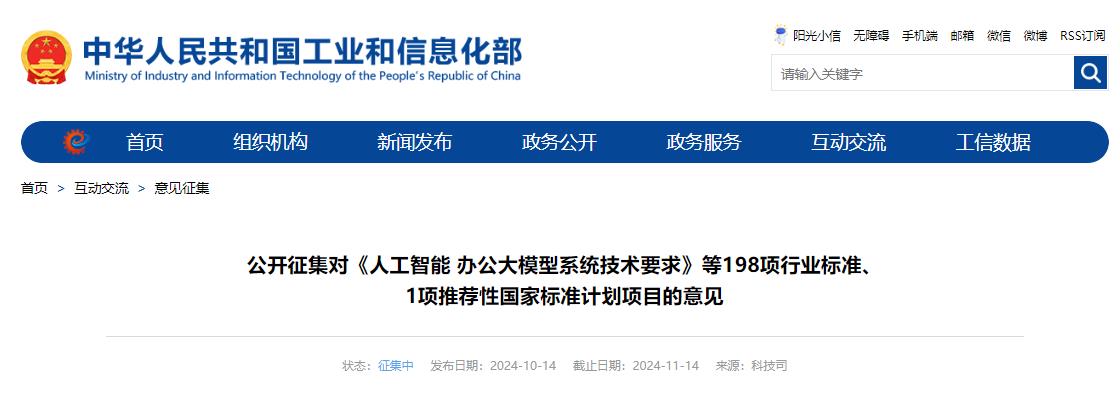 1.《人工智能 办公大模型系统技术要求》等198项行业标准制修订计划(征求意见稿)