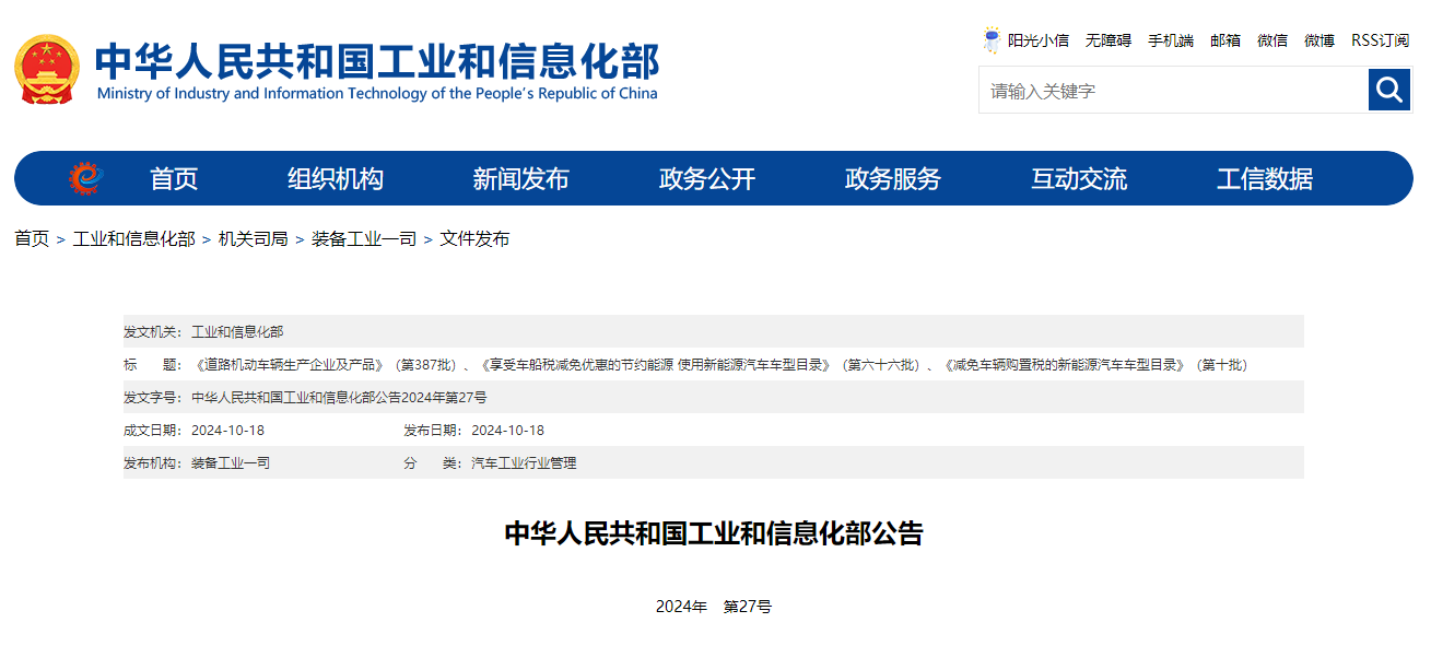 《道路机动车辆生产企业及产品》(第387批)、《享受车船税减免优惠的节约能源 使用新能源汽车车型目录》(第六十六批)、《减免车辆购置税的新能源汽车车型目录》(第十批)