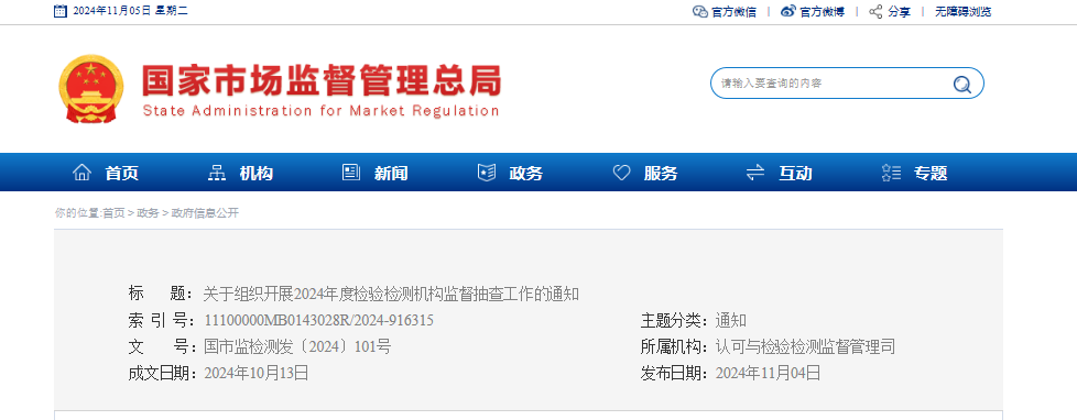 关于组织开展2024年度检验检测机构监督抽查工作的通知