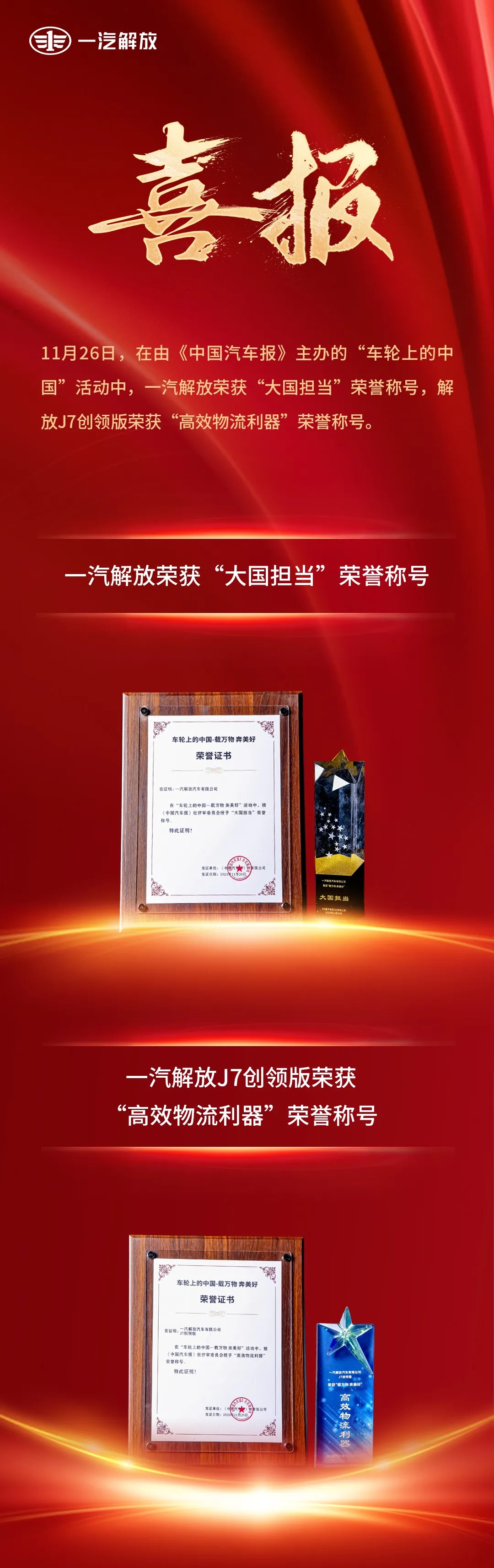 物流利器,大国担当!一汽解放荣获行业殊荣