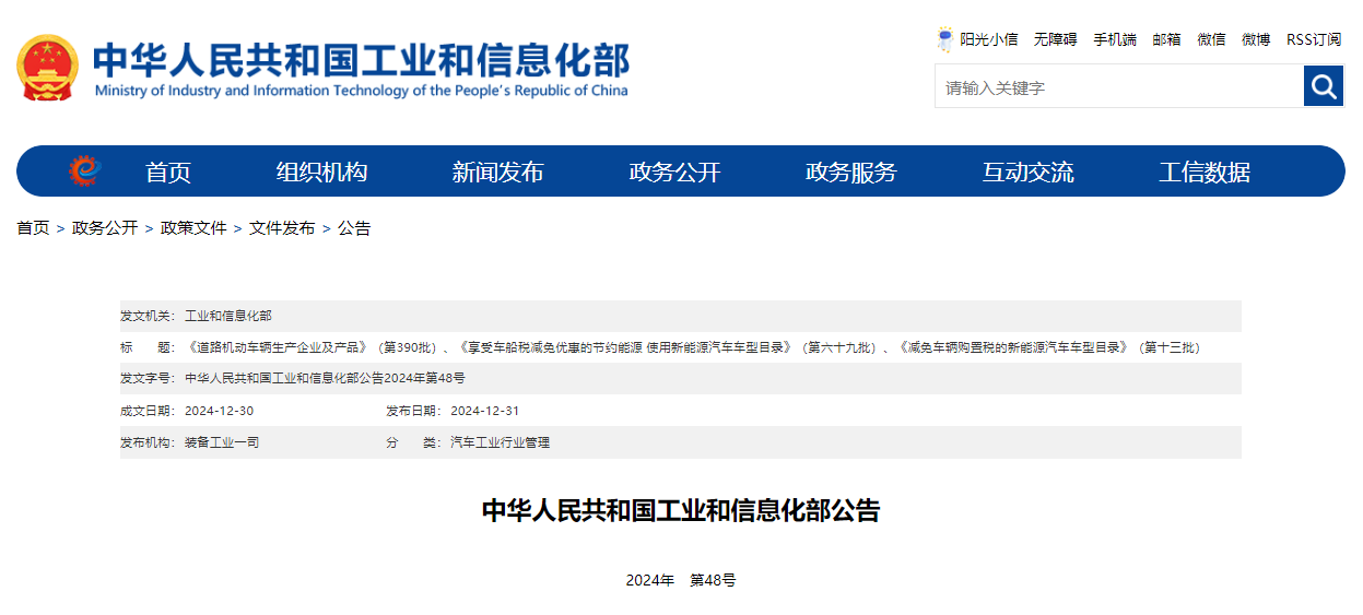 《道路机动车辆生产企业及产品》(第390批)、《享受车船税减免优惠的节约能源 使用新能源汽车车型目录》(第六十九批)、《减免车辆购置税的新能源汽车车型目录》(第十三批)