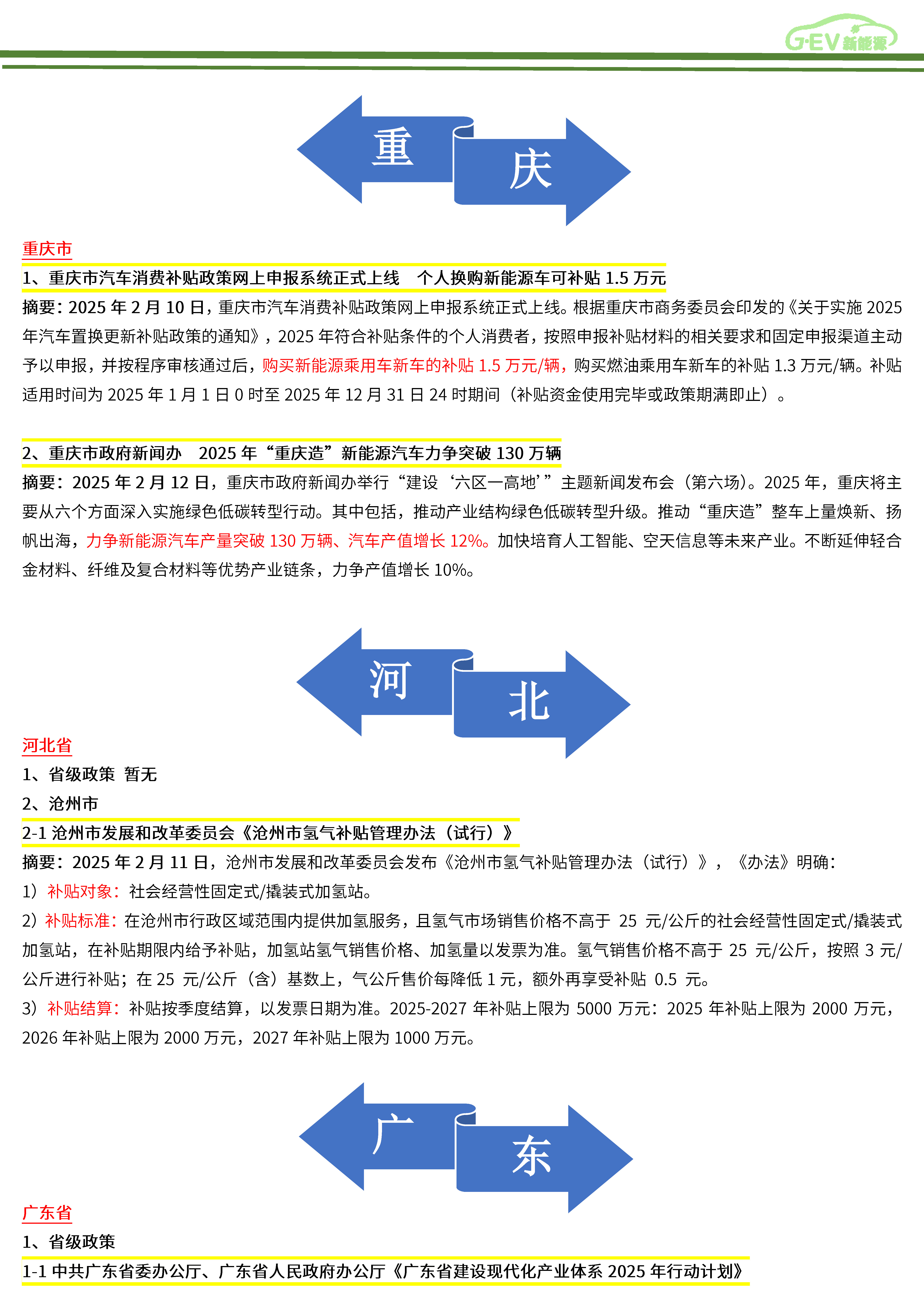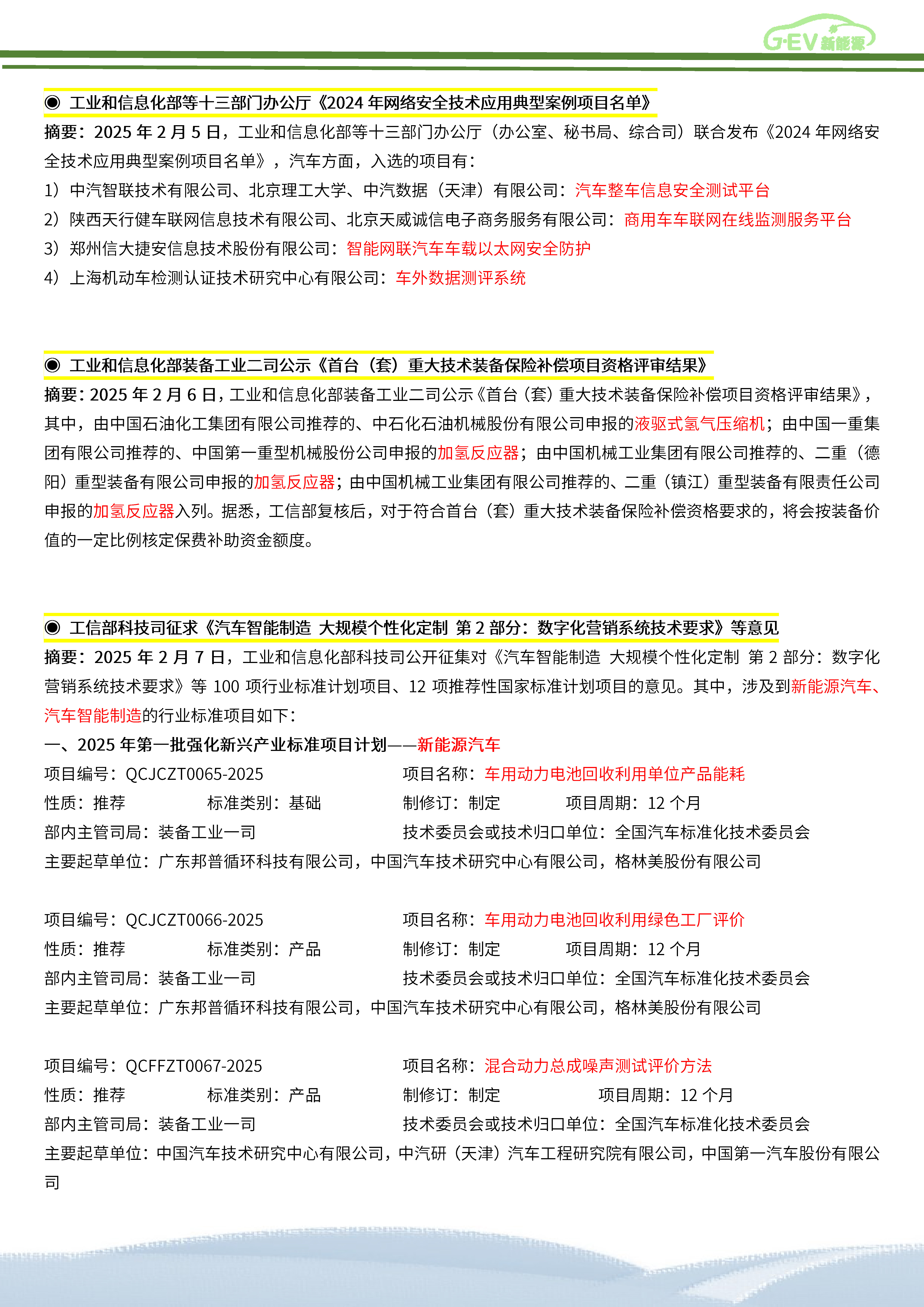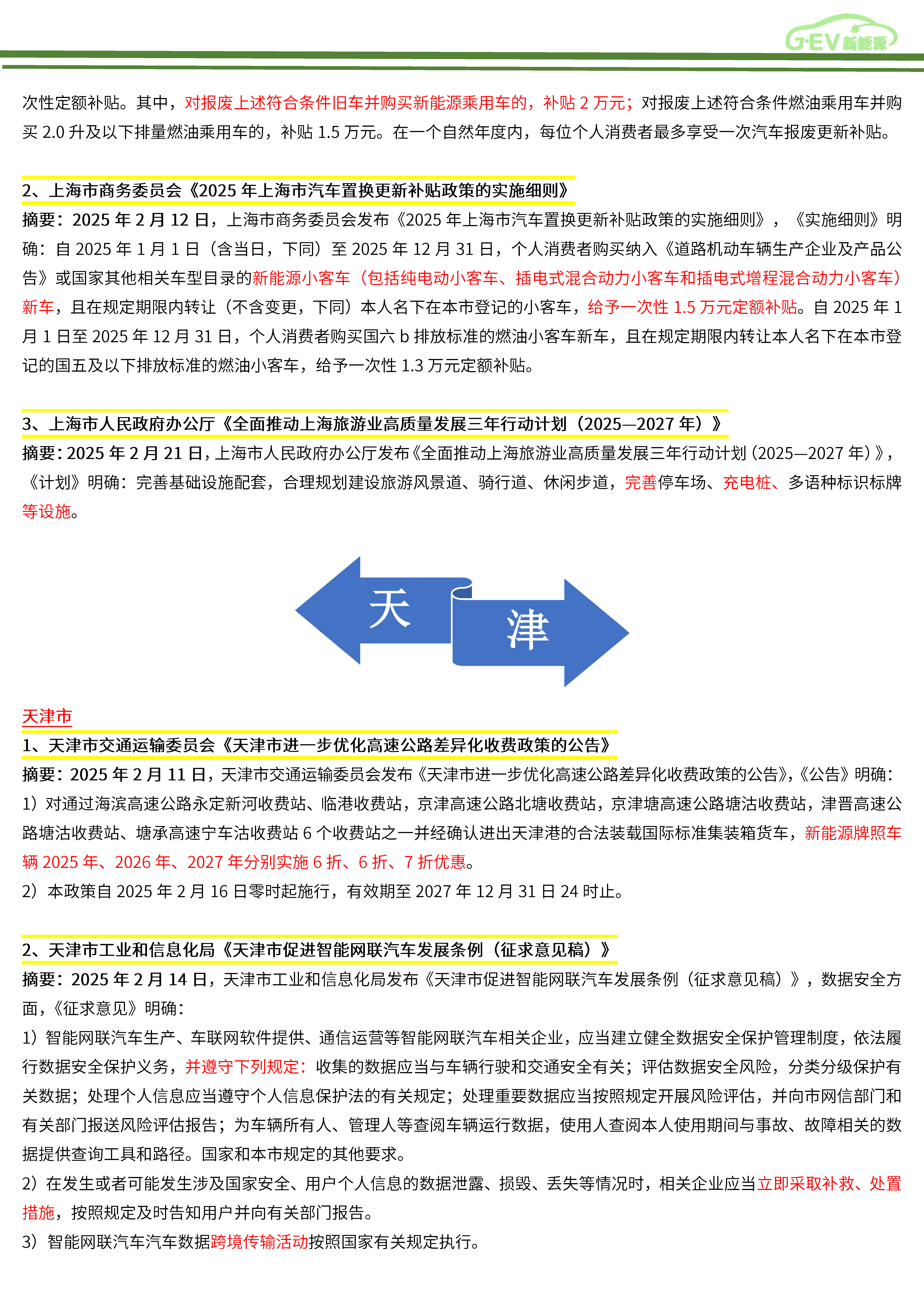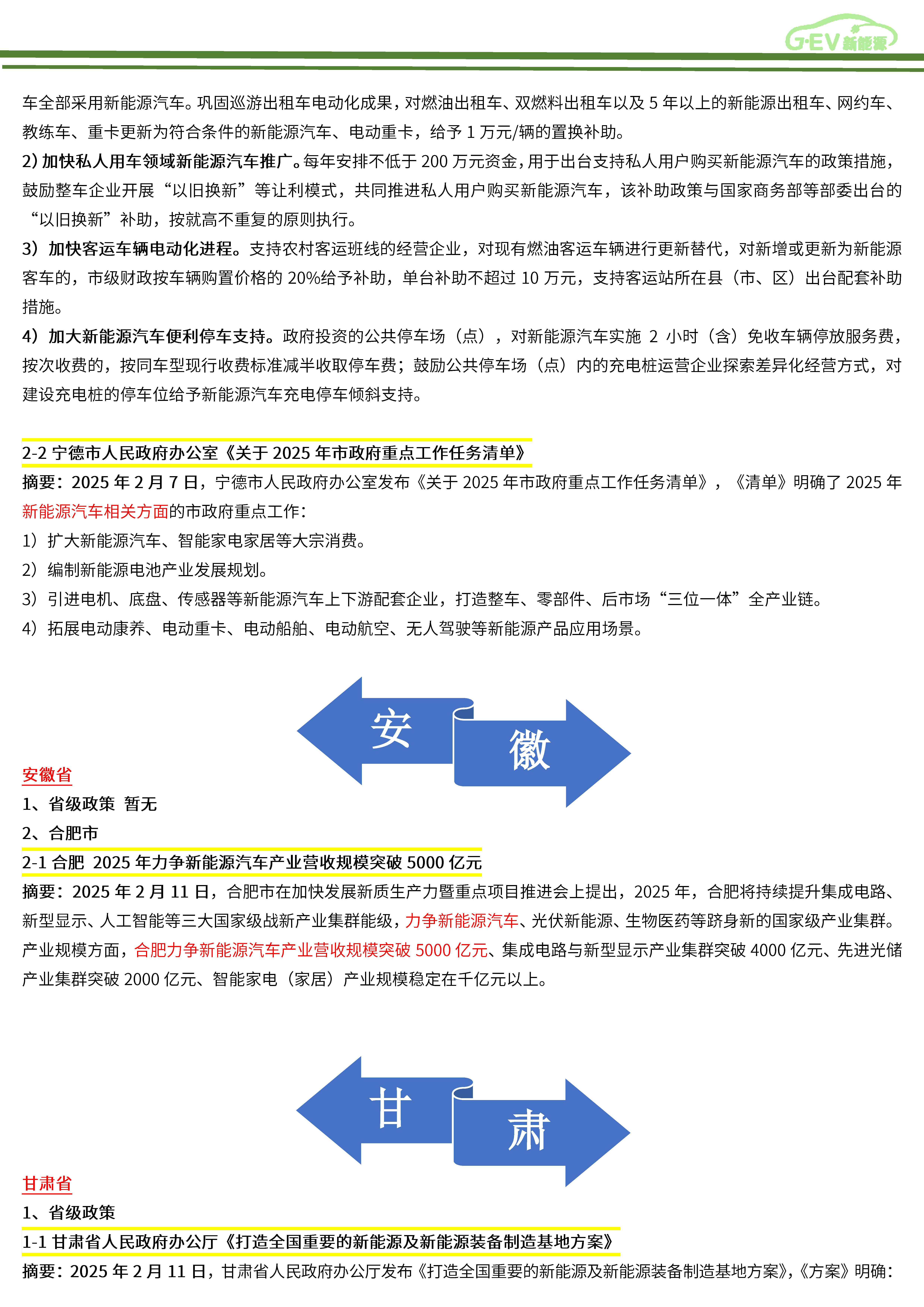 新能源汽车全产业链政策简报(2025年2月)
