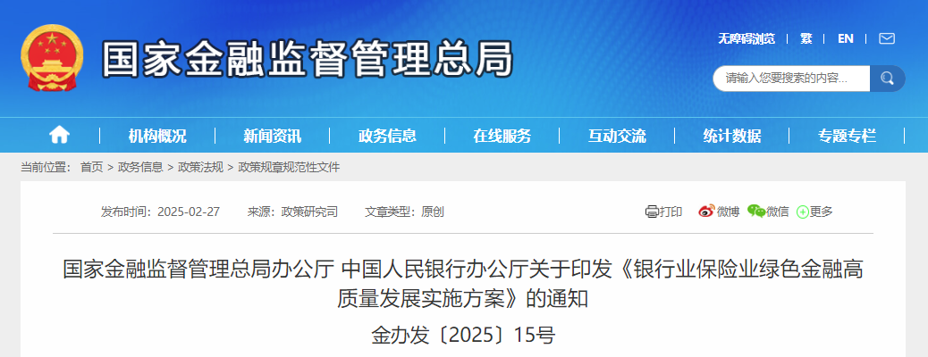 2025年2月27日,国家金融监督管理总局办公厅、中国人民银行办公厅联合发布《银行业保险业绿色金融高质量发展实施方案》(以下简称《方案》),《方案》明确:支持能源体系低碳转型,探索完善新能源汽车全产业链金融服务,加大对充电基础设施领域的金融支持。探索对生物质能、地热能、海洋能的金融服务,有序推进氢能、核电等能源发展。