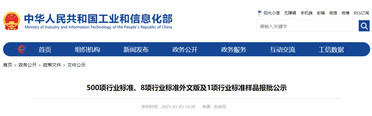 2025年3月3日,工业和信息化部科技司发布《500项行业标准、8项行业标准外文版及1项行业标准样品报批公示》(以下简称《公示》)。本文整理了此次公示报批的与汽车、车联网、氢相关的行业标准。