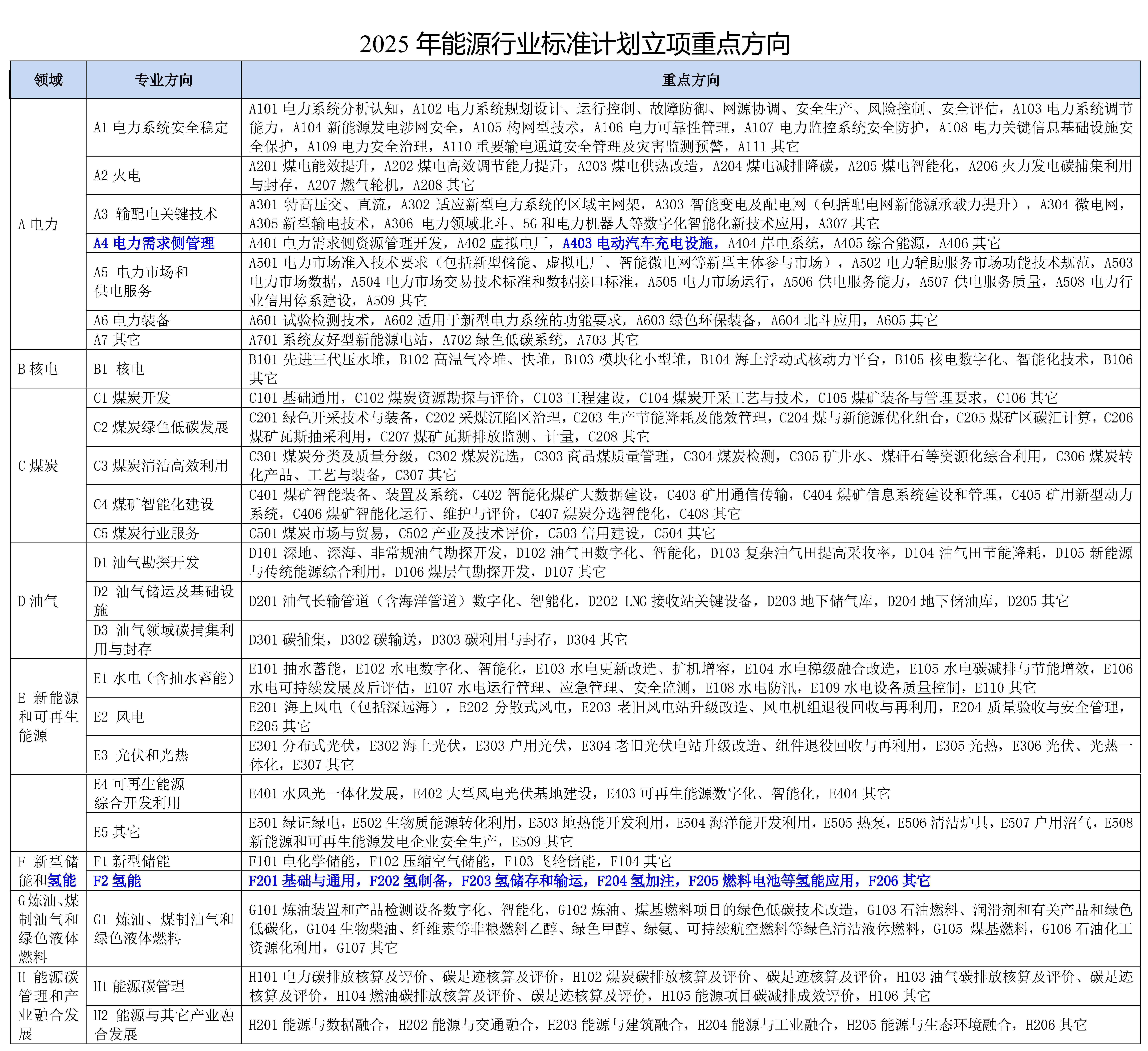 2025年3月10日,国家能源局综合司发布《2025年能源行业标准计划立项指南》( 简称《指南》),《指南》明确了2025年能源行业标准计划立项的重点方向,氢能、电动汽车方面涉及如下: