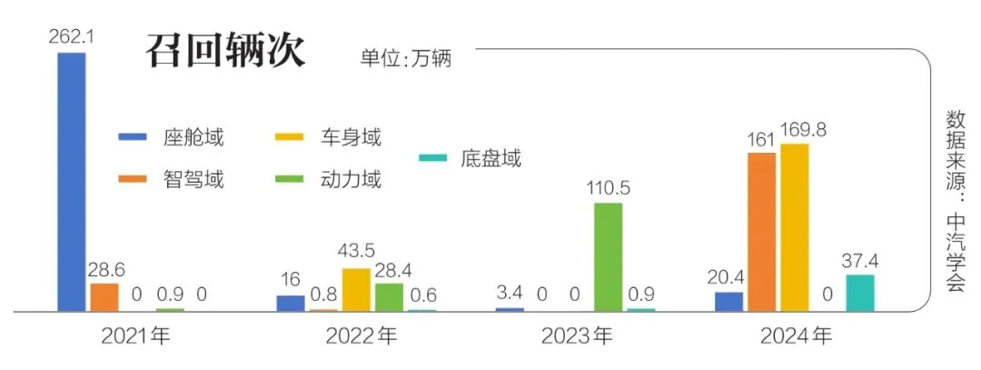 随着汽车软件代码数量增多,OTA升级也成为汽车召回实施的重要方式。截至2024年底,市场监管总局共收到企业报告的OTA升级召回活动4047份,涉及车辆4.86亿辆次。2024年,汽车企业实施OTA升级召回19次,涉及车辆406.8万辆,比上年增长246.8%。