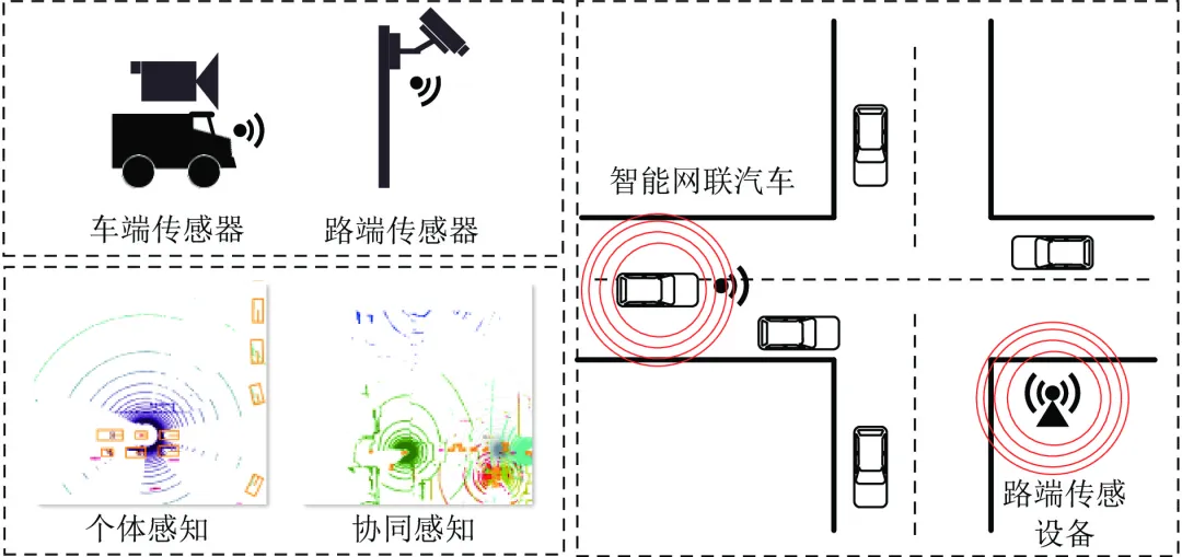 在自动驾驶场景中,车辆通过传感器感知周围环境并作出决策,其感知任务包括目标检测、跟踪和语义分割等。然而,单一个体车辆的感知具有很大局限性,如远距离目标分辨率较低,容易被忽视,存在遮挡问题,对转角处的盲区信息、视距外的路况信息难以获取,这些问题很大程度上影响了自动驾驶的安全性与可靠性。