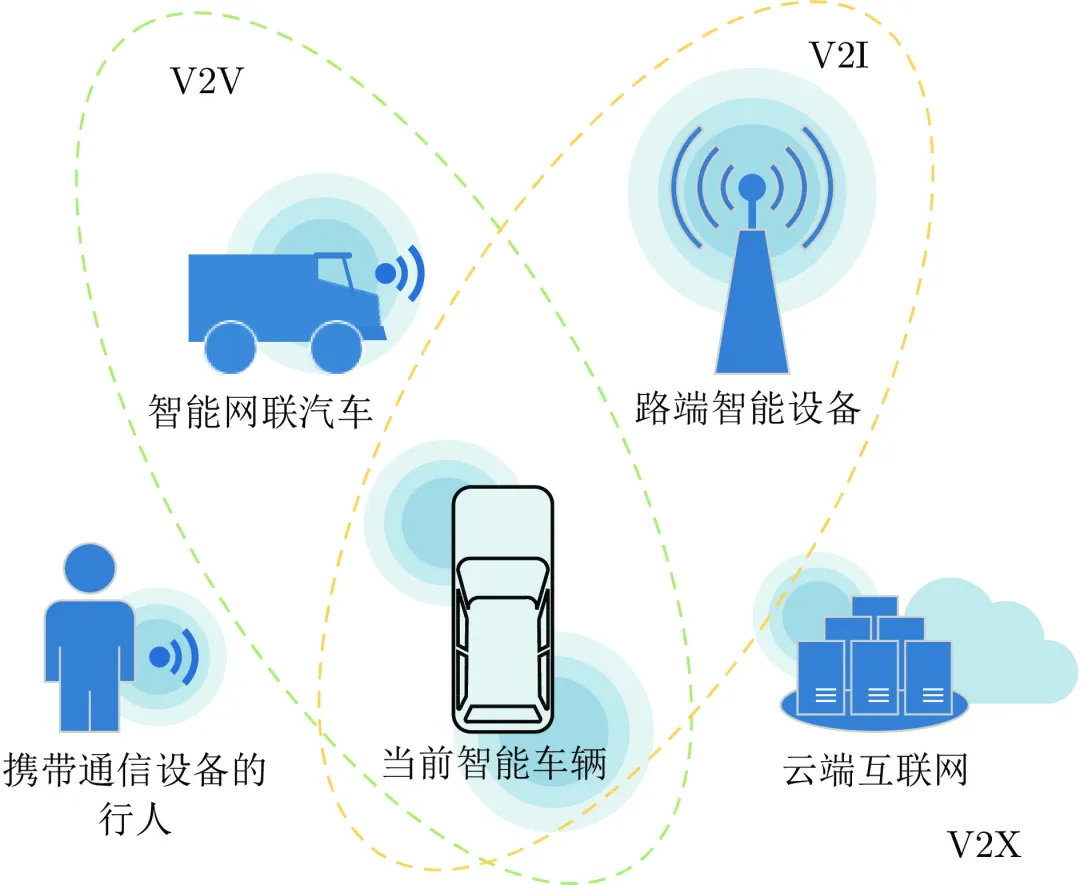 通过V2V通信进行信息共享是智能网联汽车协同感知的一项重要技术,它借助周围智能车辆获取的感知信息在复杂的交通环境中观察更广阔的范围并感知更多被遮挡的物体。在通信技术上的主要瓶颈之一是低延迟和低通信负载的精确数据共享。V2V通信技术的有效性也取决于在有限的网络带宽内传输哪些数据以及如何使用聚合信息来建立对交通状况的连贯而准确的理解。