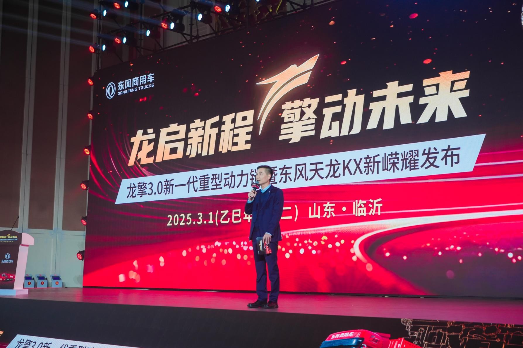 龙启新程,擎动未来。3月1日,东风商用车龙擎3.0新一代重型动力链暨东风天龙KX新嵘耀在物流之都山东临沂上市。东风商用车有限公司总经理张小帆,党委书记、副总经理郑华,副总经理、技术中心中心长吴怀主,与来自全国的经销商伙伴、大客户代表、媒体嘉宾等共300余人,一同见证龙擎3.0动力链实现国产自主动力领域的历史性突破,为商用车全场景时代注入高效智慧的龙擎能量。