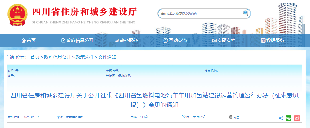 为贯彻国家推动氢能产业高质量发展的工作安排,落实省委、省政府有关要求,进一步规范我省氢燃料电池汽车车用加氢站建设运营管理,确保氢能源产业健康发展,结合我省实际,我厅牵头起草了《四川省氢燃料电池汽车车用加氢站建设运营管理暂行办法(征求意见稿)》(见附件1),现向社会公开征求意见。