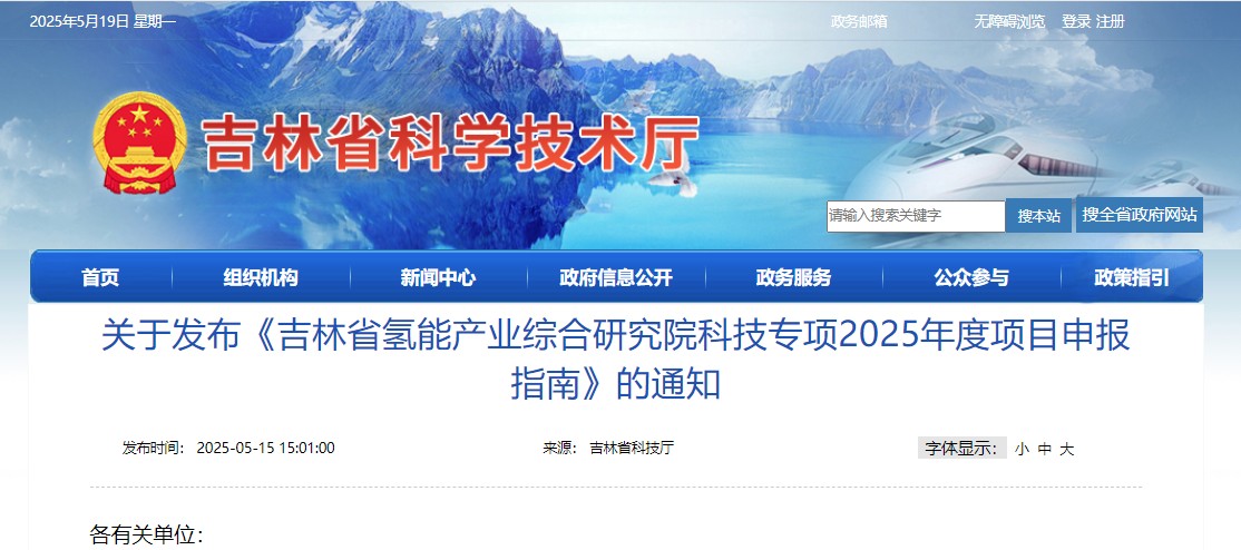 根据《吉林省氢能产业综合研究院建设方案》《吉林省科技发展计划项目管理办法》等文件规定,现将吉林省氢能产业综合研究院科技专项(以下简称氢能院、氢能专项)2025年度项目申报指南予以公布。有关事项通知如下。