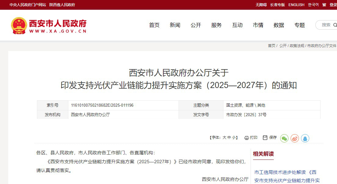 西安市人民政府办公厅于5月14日发布《支持光伏产业链能力提升实施方案(2025—2027年)》(以下简称《方案》),《方案》明确: