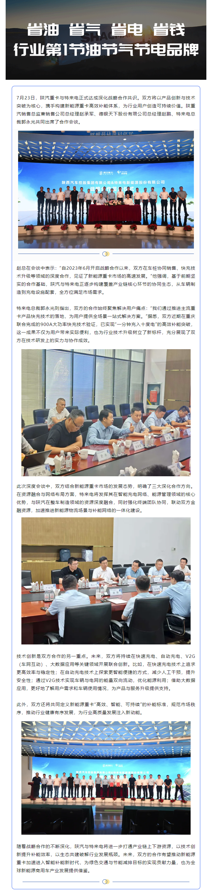 陕汽重卡携手特来电 共筑新能源重卡智能补能新生态