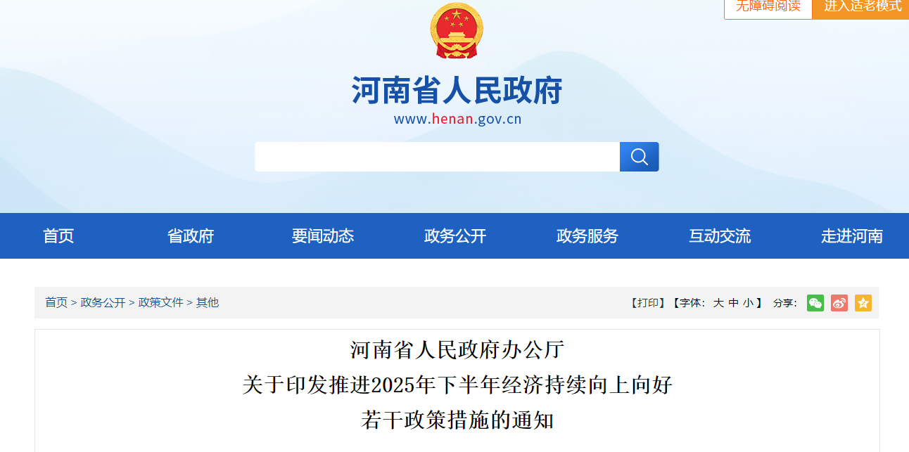 为深入学习贯彻习近平总书记在河南考察时重要讲话精神,全面落实省委十一届九次全会部署,着力稳就业、稳企业、稳市场、稳预期,推动经济持续向上向好,确保完成全年各项目标任务,河南省人民政府办公厅制定《推进2025年下半年经济持续向上向好若干政策措施》(以下简称《措施》)并于近日发布。《措施》明确: