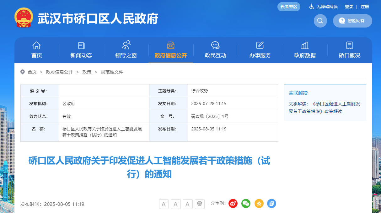为突破性发展我区人工智能产业,加速形成发展新动能,全面带动传统产业升级,大力推动“四个转型”、加快建设“三个先行示范区”,将硚口打造成武汉国家人工智能先导区重要支撑,武汉市硚口区人民政府制定《硚口区促进人工智能发展若干政策措施(试行)》(以下简称《措施》)并于近日发布,《措施》明确:鼓励发展智能网联汽车等具身智能载体,对符合条件的企业,提供在汉江湾人工智能产业园的空间载体落地支持,加快项目落地。对实现首台(套)装备技术突破的,按首台(套)装备研发成本的30%最高给予100万元资金支持。