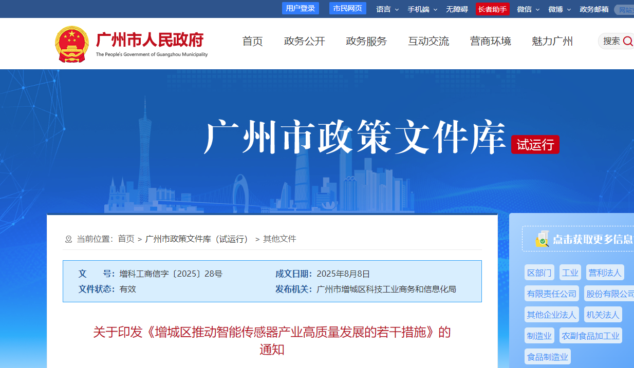 为落实相关文件精神,培育壮大增城区智能传感器产业,打造粤港澳大湾区智能传感器产业高地,助力广州打造国家集成电路产业发展“第三极”核心承载区,广州市增城区科技工业商务和信息化局牵头制定《增城区推动智能传感器产业高质量发展的若干措施》(以下简称《措施》)并于近日印发实施。《措施》明确:鼓励智能网联与新能源汽车等领域企业通过定期组织供需对接会、开放应用场景、产品优先应用等方式,加强与智能传感器产业链企业协同联动,培育国内高水平供应链,降低采购成本。