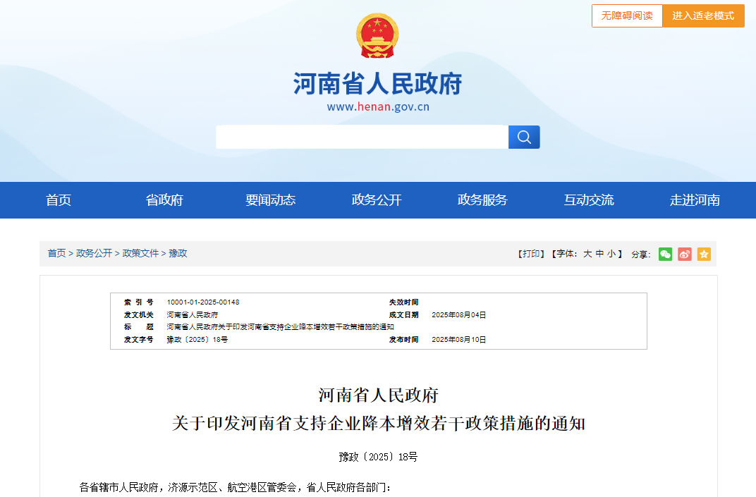 为深入贯彻习近平总书记在河南考察时的重要讲话精神,全面落实省委十一届九次全会部署,聚焦“1+2+4+N”目标任务体系,坚持系统观念、标本兼治、综合施策,推动要素端、服务端、产业端、管理端协同发力降低企业成本,结合本省实际,河南省人民政府制定《河南省支持企业降本增效若干政策措施》(以下简称《措施》),《措施》明确:实施道路通行费优惠和运营货车更新补贴政策。