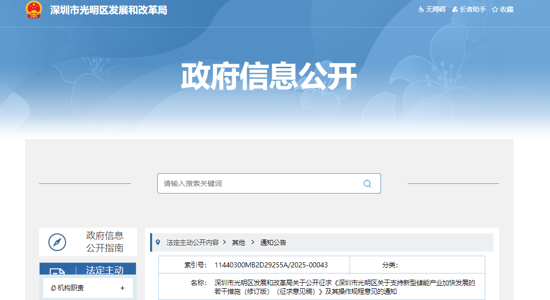 深圳市光明区关于支持新型储能产业加快发展的若干措施(修订版)(征求意见稿)