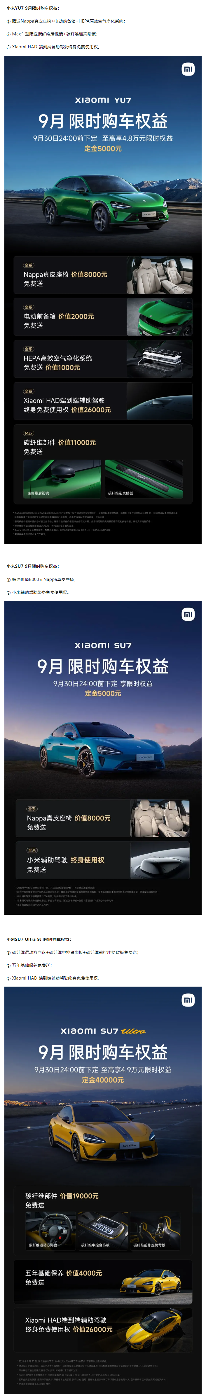 小米汽车9月限时购车权益