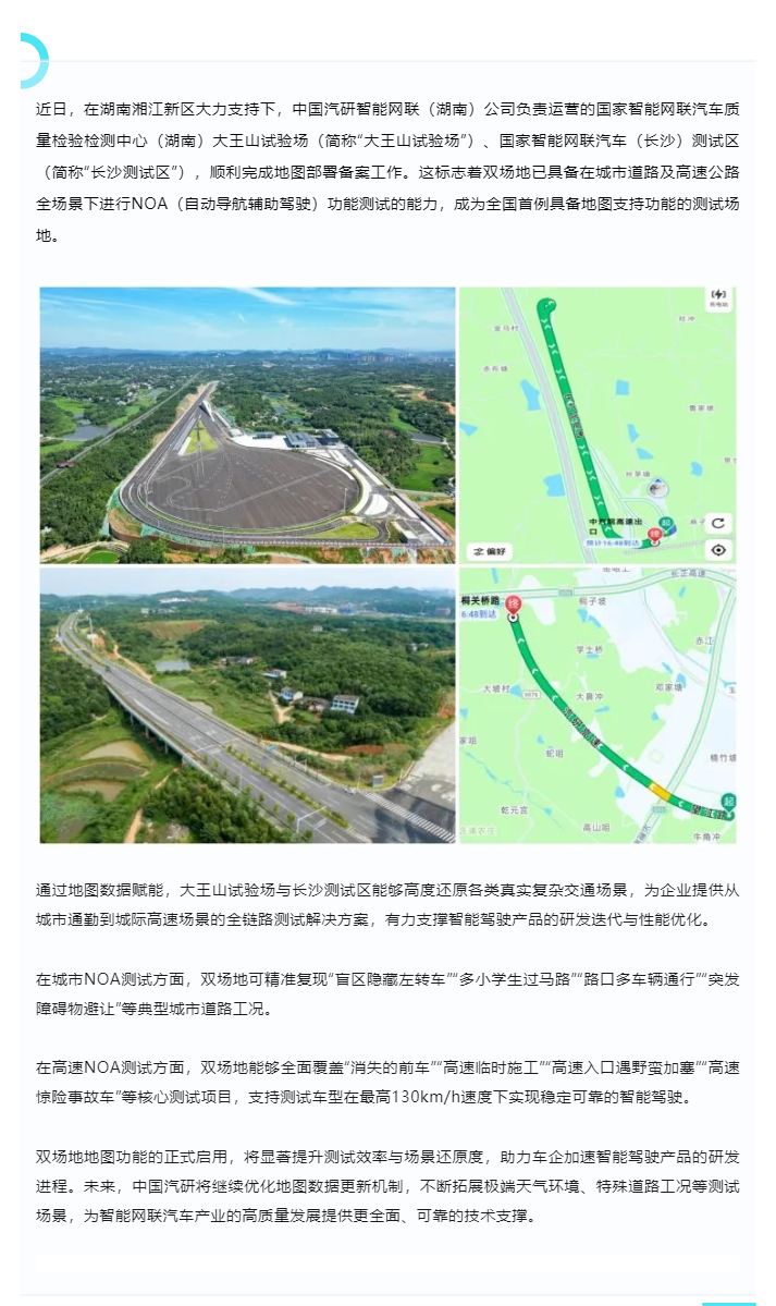 全国首例 中国汽研智能网联(湖南)公司解锁城市及高速场景NOA功能测试