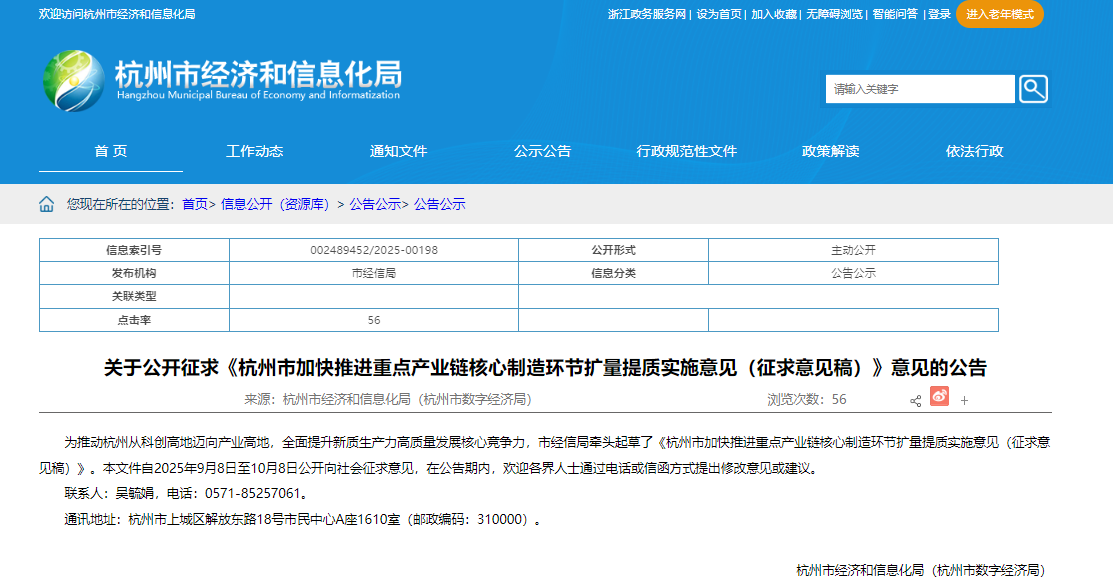 杭州市加快推进重点产业链核心制造环节扩量提质实施意见(征求意见稿)