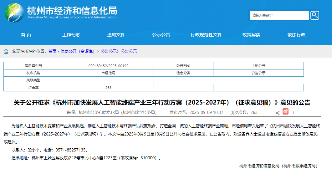 杭州市加快发展人工智能终端产业三年行动方案(2025-2027年)(征求意见稿)