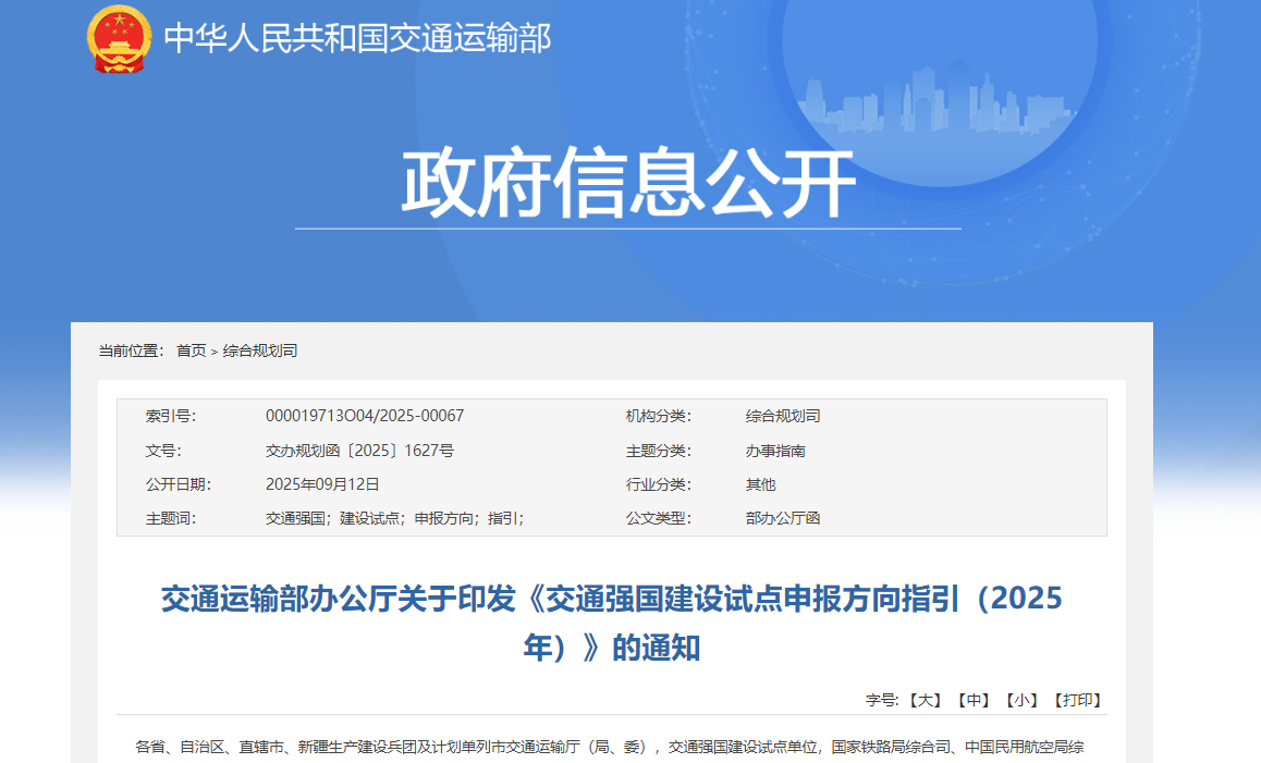 涉自动驾驶技术、电动重卡等相关方向,交通部2025交通强国建设试点申报中