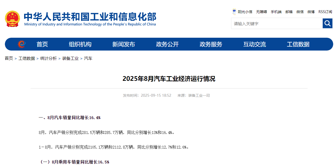 1-8月,汽车产销分别完成2105.1万辆和2112.8万辆,同比分别增长12.7%和12.6%。