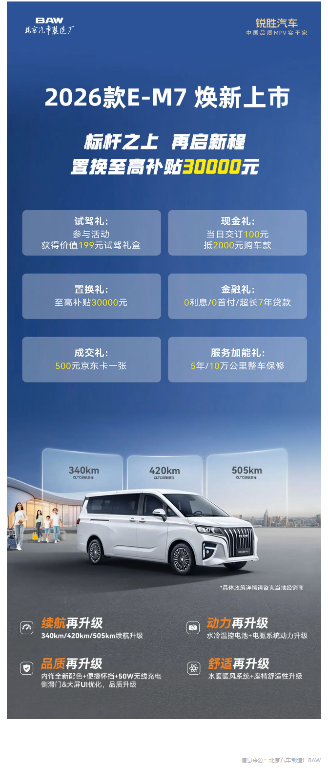 BAW北汽制造丨2026款锐胜汽车E-M7焕新上市