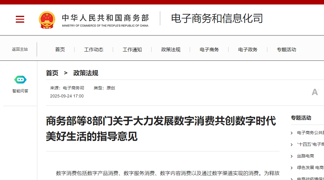 商务部等8部门关于大力发展数字消费共创数字时代美好生活的指导意见