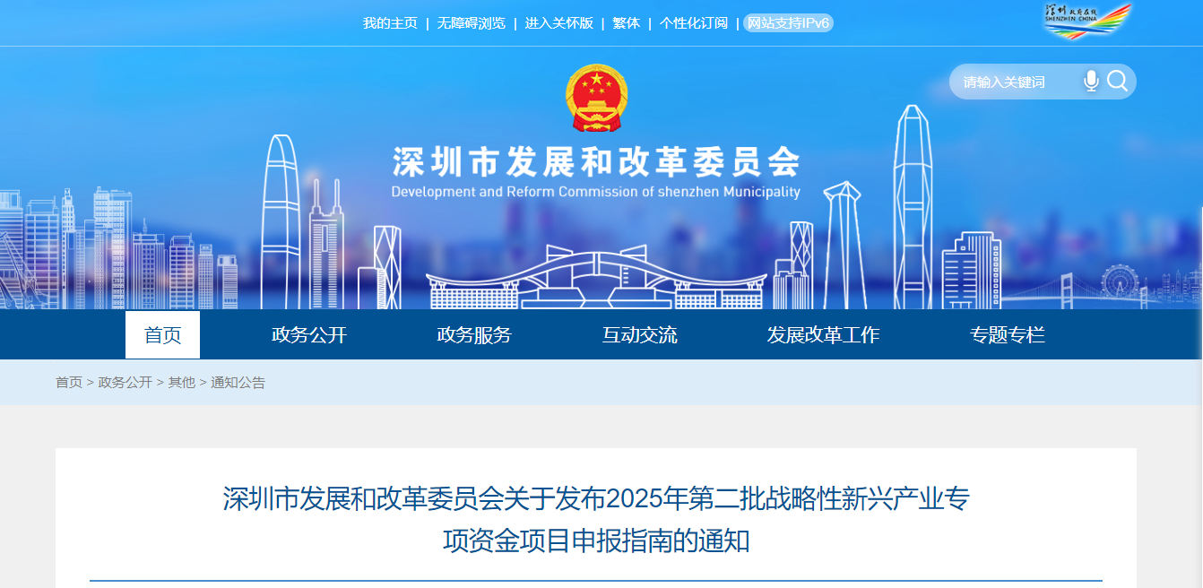 为贯彻落实《深圳市人民政府关于发展壮大战略性新兴产业集群和培育发展未来产业的意见》《关于加快发展新质生产力进一步推进战略性新兴产业集群和未来产业高质量发展的实施方案》及“20+8”产业集群相关领域政策,加快培育发展战略性新兴产业集群,深圳市发展和改革委员会现发布2025年第二批战略性新兴产业专项资金项目申报指南。