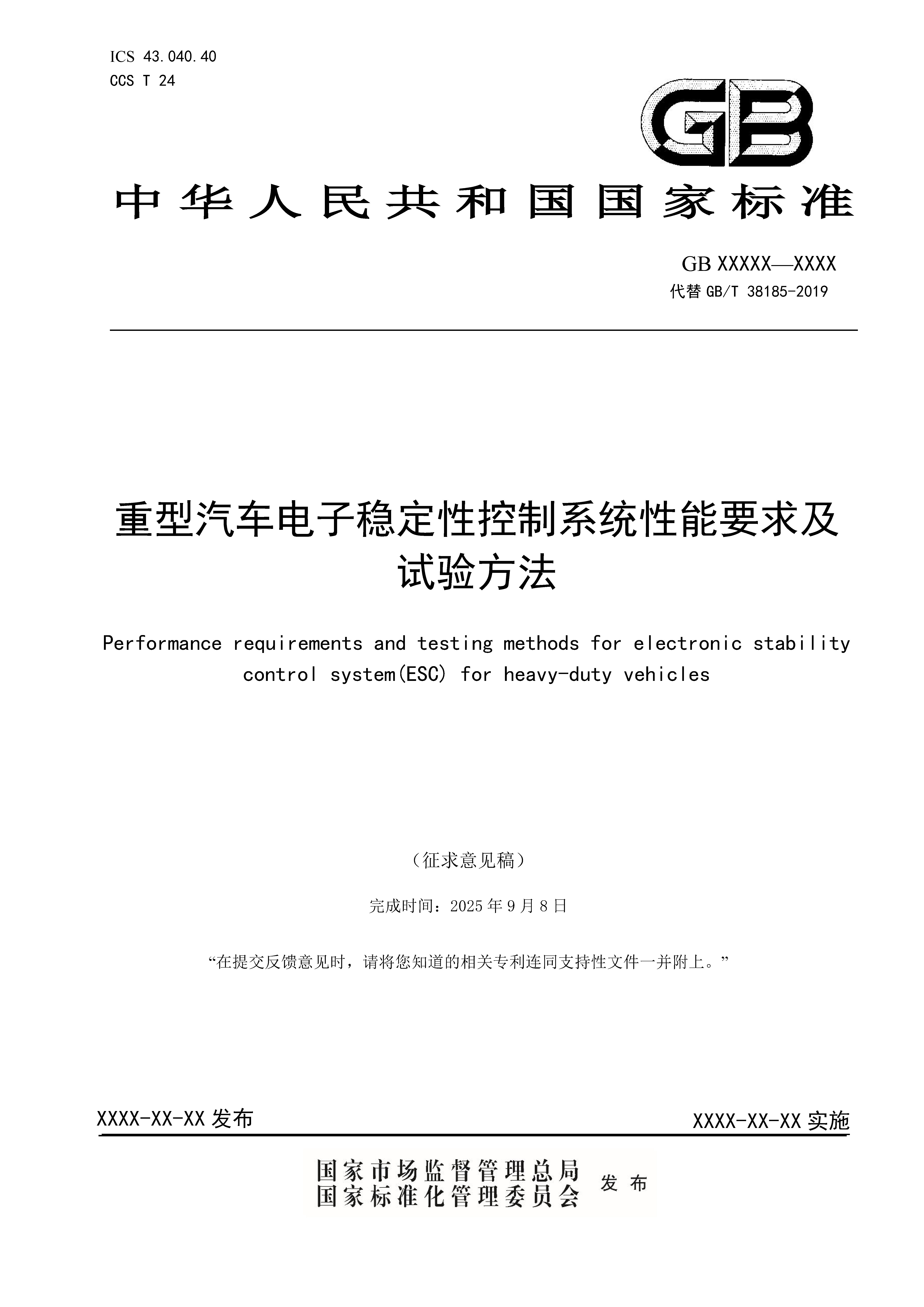 二、《重型汽车电子稳定性控制系统性能要求及试验方法》