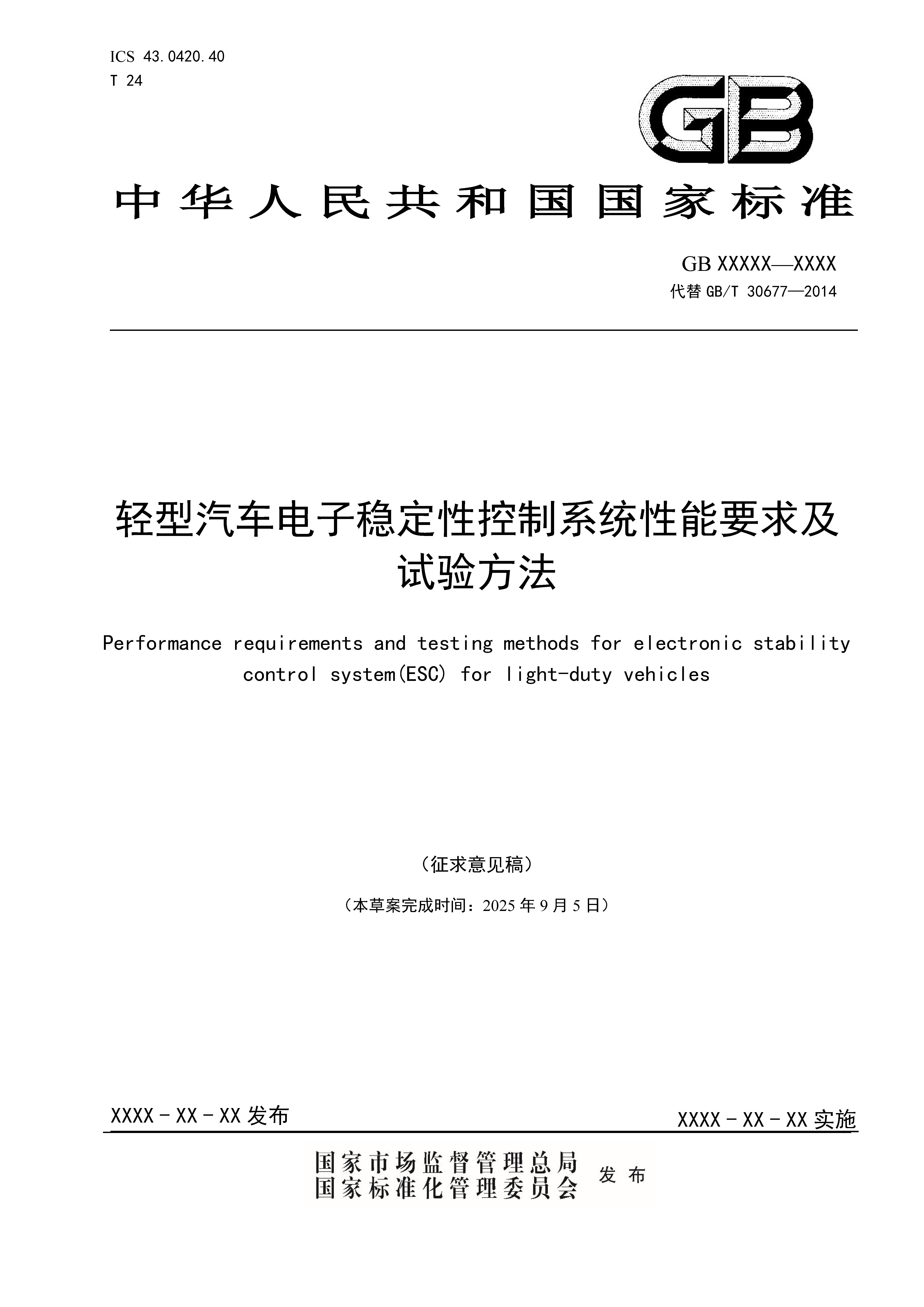 一、《轻型汽车电子稳定性控制系统性能要求及试验方法》