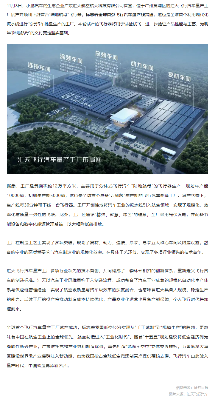 小鹏汇天飞行汽车量产工厂首台“陆地航母”飞行器下线
