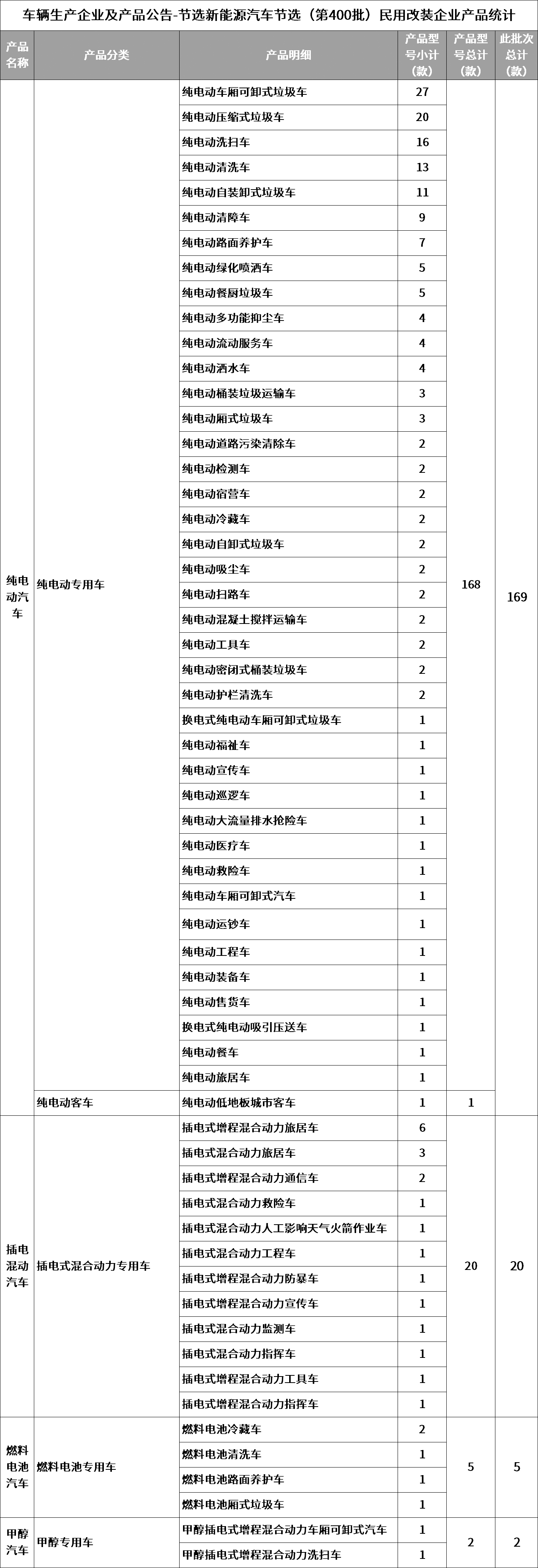 第400批道路机动车辆生产企业及产品-节选新能源汽车范畴的产品——民用改装车生产企业明细
