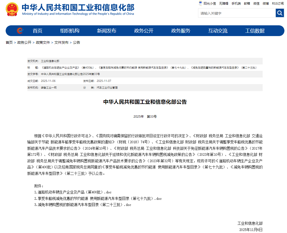 20251107-第400批道路机动车辆生产企业及产品(新能源汽车)