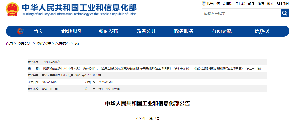 《道路机动车辆生产企业及产品》(第400批)、《享受车船税减免优惠的节约能源 使用新能源汽车车型目录》(第七十九批)、《减免车辆购置税的新能源汽车车型目录》(第二十三批)