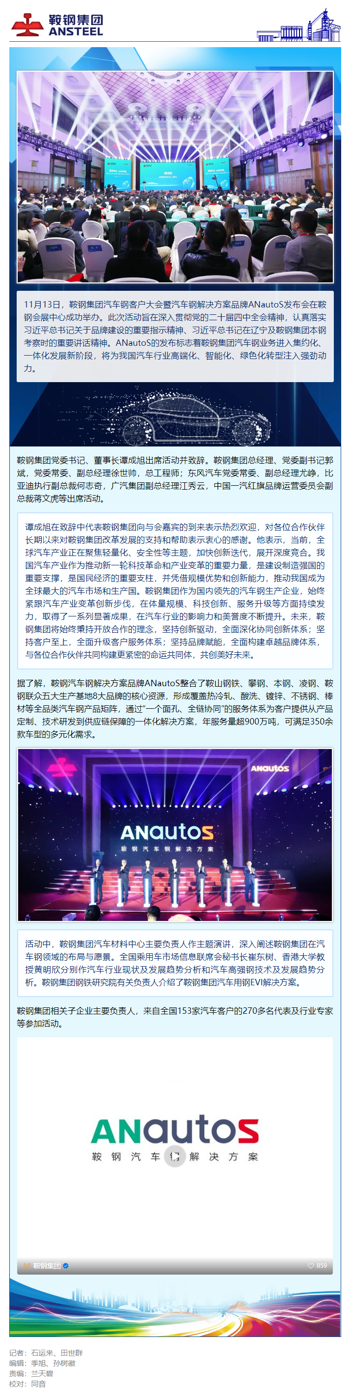 鞍钢集团汽车钢客户大会暨汽车钢解决方案品牌ANautoS发布会成功举办