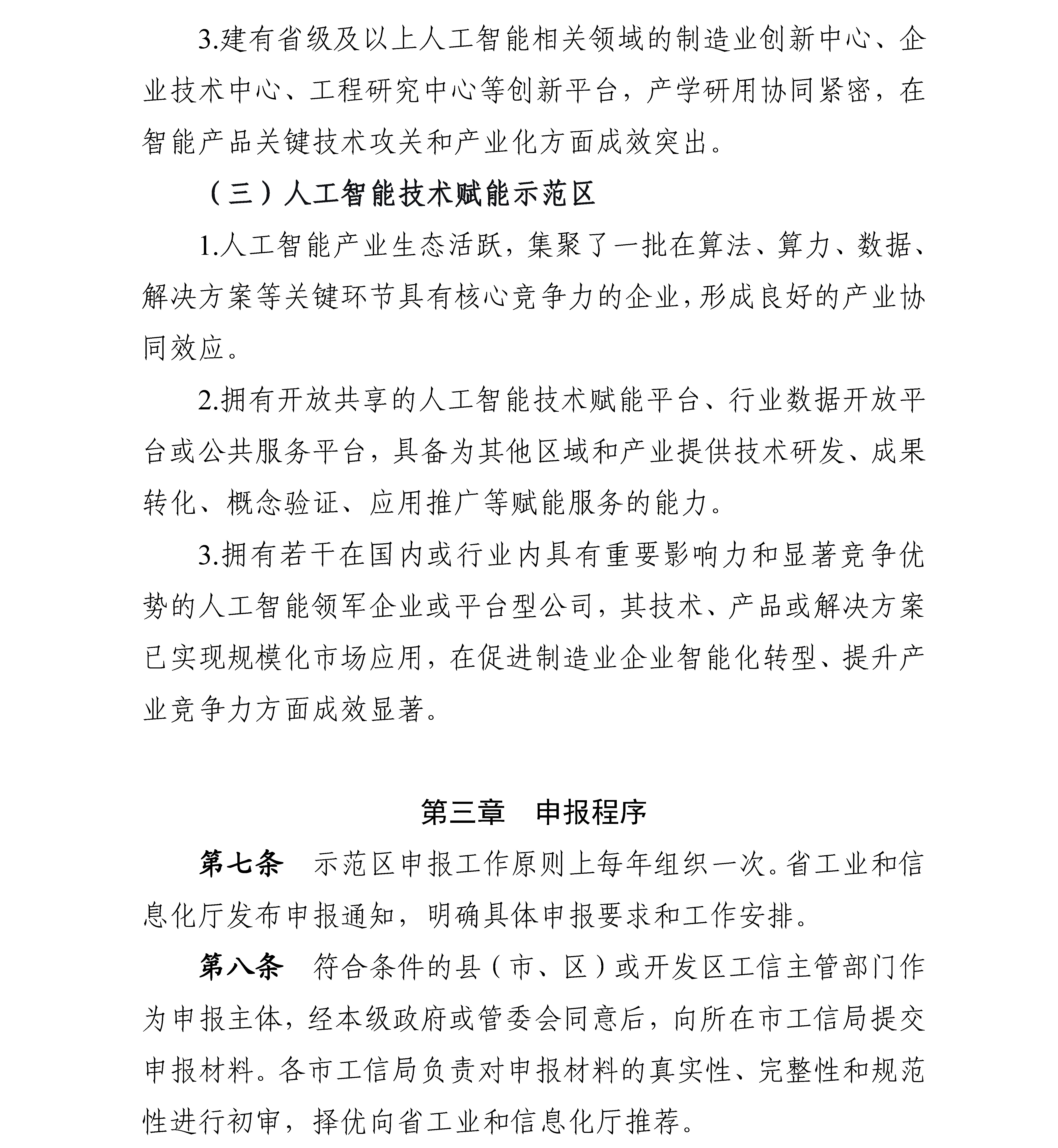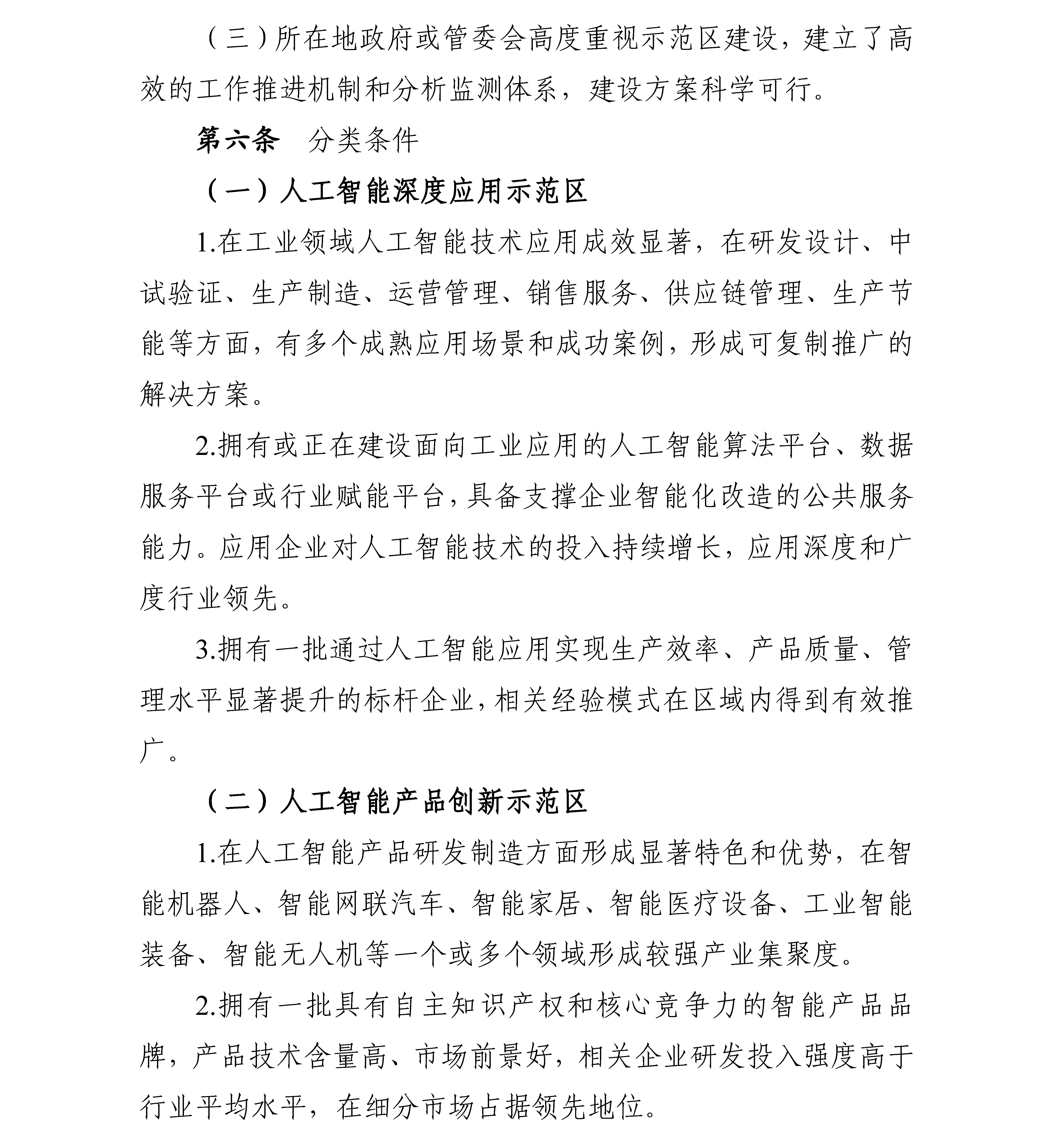 《征求意见》对人工智能深度应用、产品创新、技术赋能3类示范区分别提出创建条件。评估结果分为优秀、合格、不合格三个等次。对评估优秀的示范区,优先推荐申报国家级相关示范项目,并在省级相关政策、资金、项目安排上予以倾斜支持。评估不合格的,给予一定期限整改;整改后仍不合格的,撤销示范区称号。