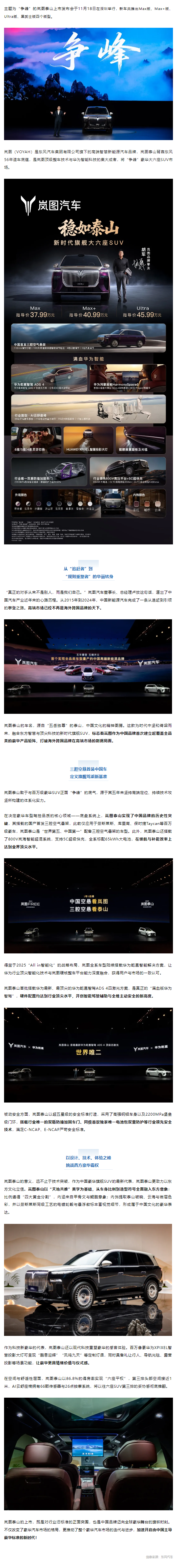 东风汽车丨大型新能源SUV岚图泰山正式上市