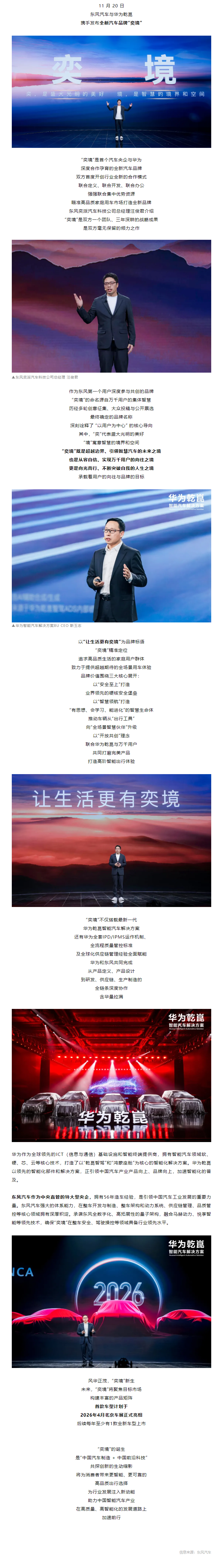 东风汽车与华为乾崑携手发布全新汽车品牌“奕境”