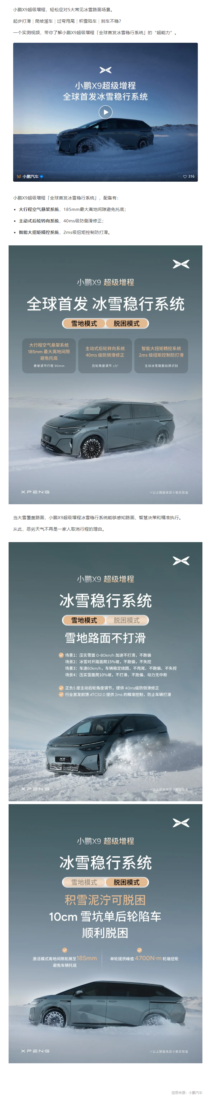 小鹏X9超级增程,全球首发冰雪稳行系统