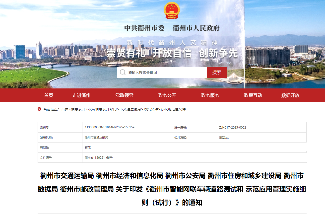 浙江衢州 智能网联车辆道路测试和示范应用管理实施细则(试行)