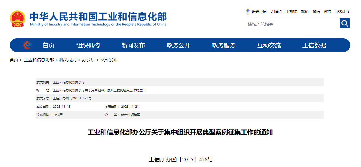 为深入贯彻落实党中央、国务院关于加快推进新型工业化的决策部署,加强典型经验总结和优秀案例推广,打造行业精品标杆,减少多头申报,现集中组织开展2025年典型案例征集工作。有关事项通知如下: