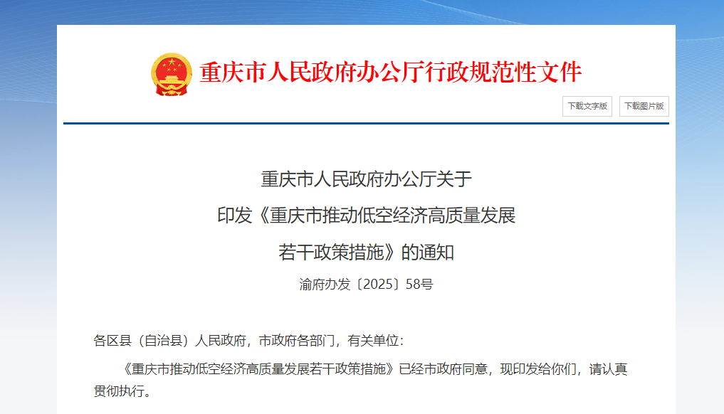 为进一步抢抓低空经济发展机遇,加快拓展低空示范场景、培育壮大低空产业、健全完善保障体系,打造具有重庆辨识度的低空经济创新发展强市,结合我市实际,重庆市人民政府办公厅制定《重庆市推动低空经济高质量发展若干政策措施》(以下简称《措施》)并于近日发布,《措施》明确: