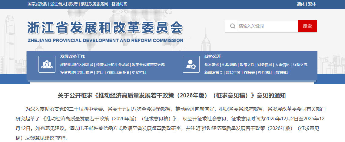 为深入贯彻落实党的二十届四中全会、省委十五届八次全会决策部署,推动经济向新向好,根据省委省政府部署,省发展改革委会同有关部门研究起草了 《推动经济高质量发展若干政策(2026年版)(征求意见稿)》,现公开征求社会意见。《征求意见》明确: